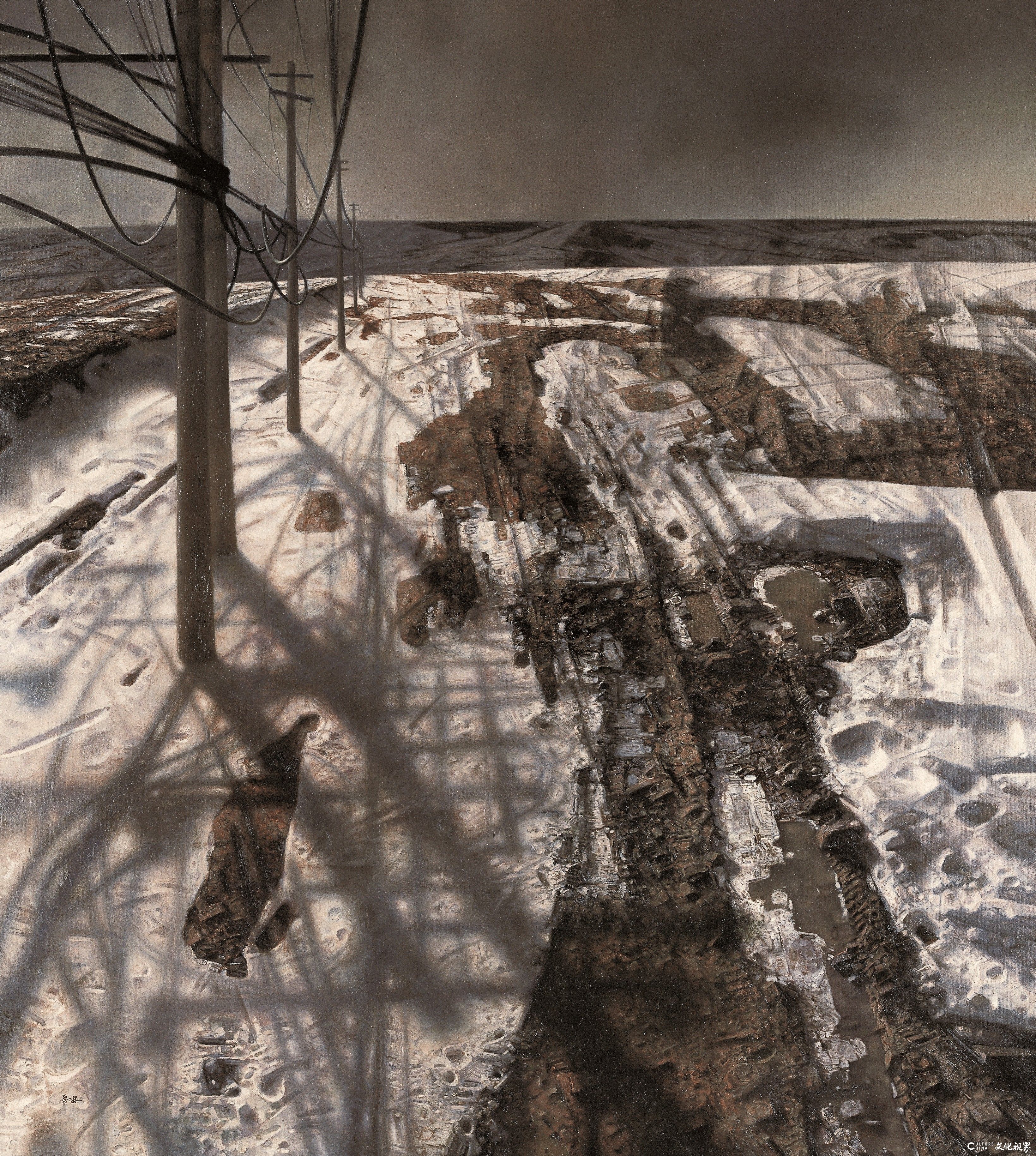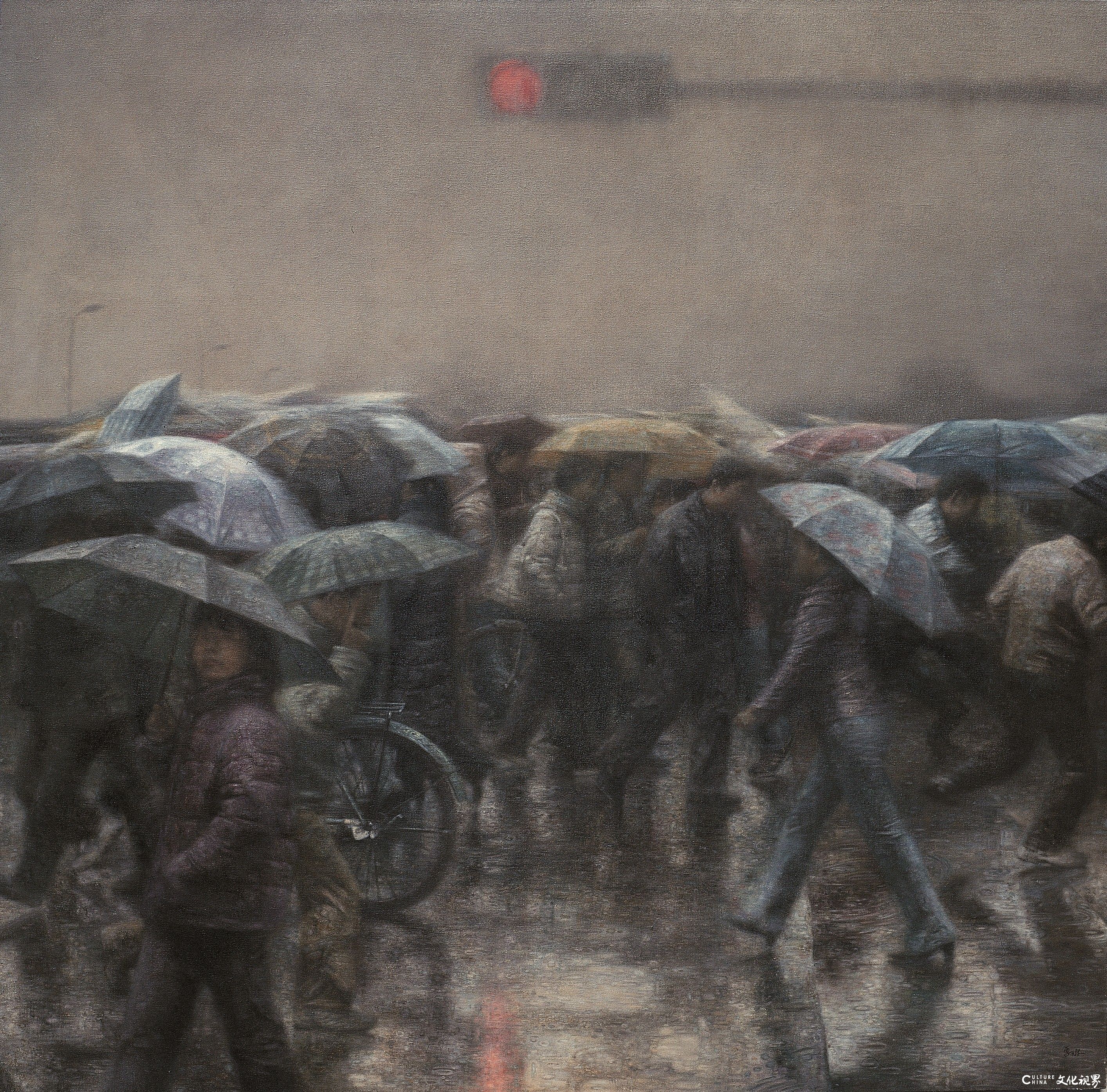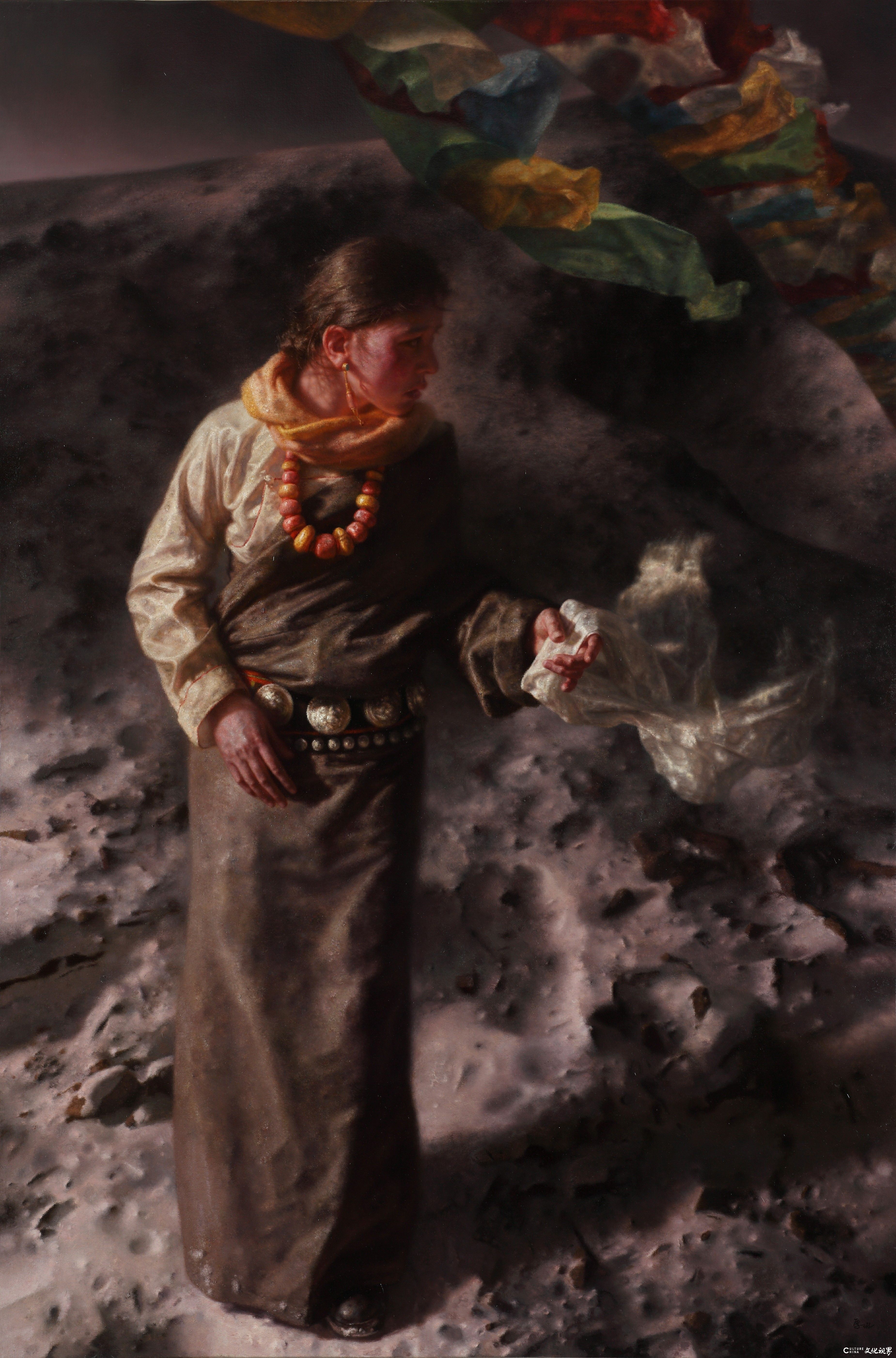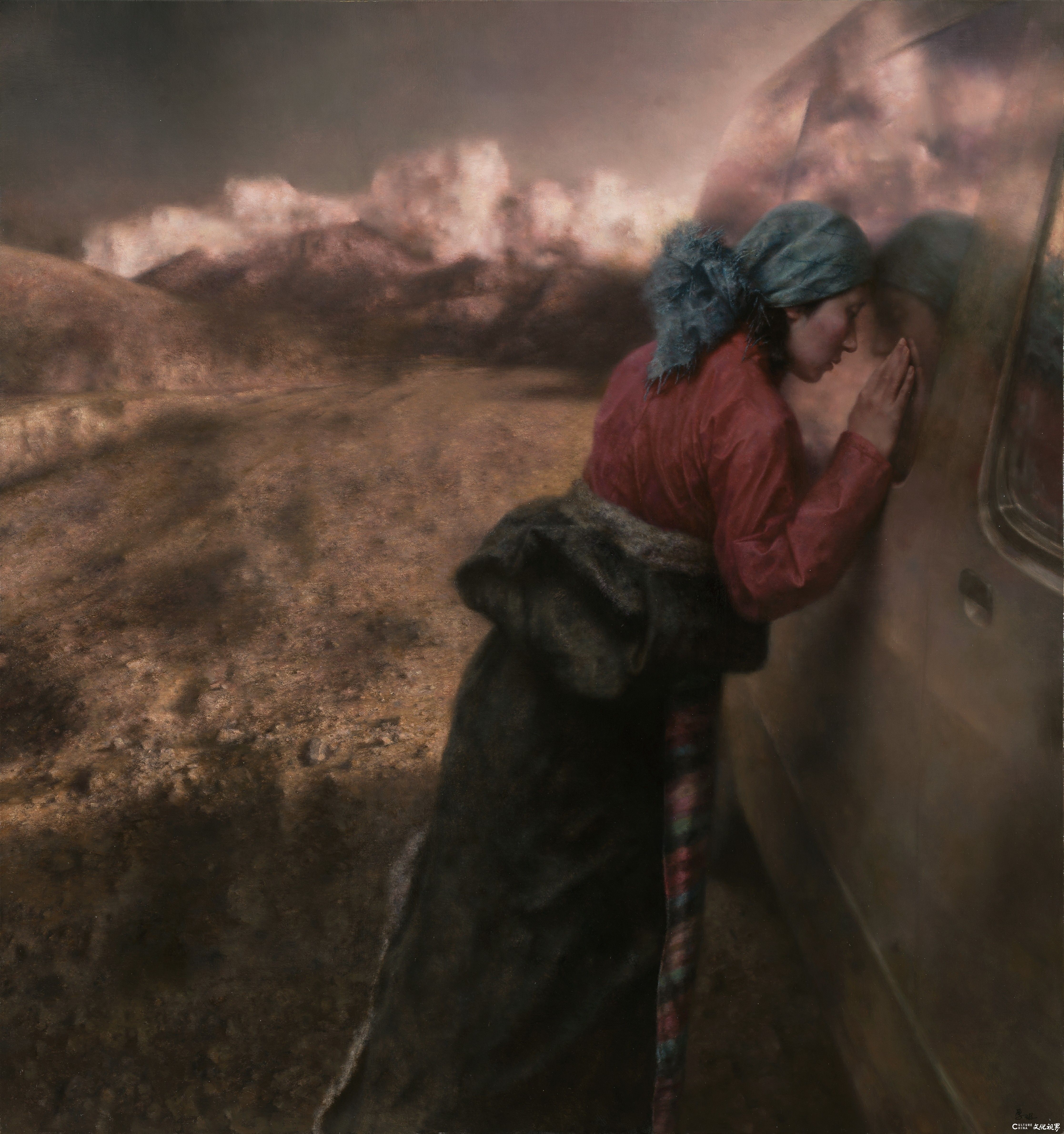 马琳热衷于表达人及人性。无论是都市中忙碌的人群,亦或是青藏高原上虔诚的祷告者,都成为他笔下的描绘对象。他运用巧妙技法,看似具象写实,实则抽象地传达出无尽的人性与缥缈情绪,把人物安排在风景中,在具象与抽象之间寻得微妙平衡。这种平衡打破了写实性油画对固态瞬间的执着塑造,更贴近时间与存在的本质。他笔下人物皆为沧海一粟,映照出我们所处的表象世界,带着一种饱含坦荡与澄明的悲悯感。