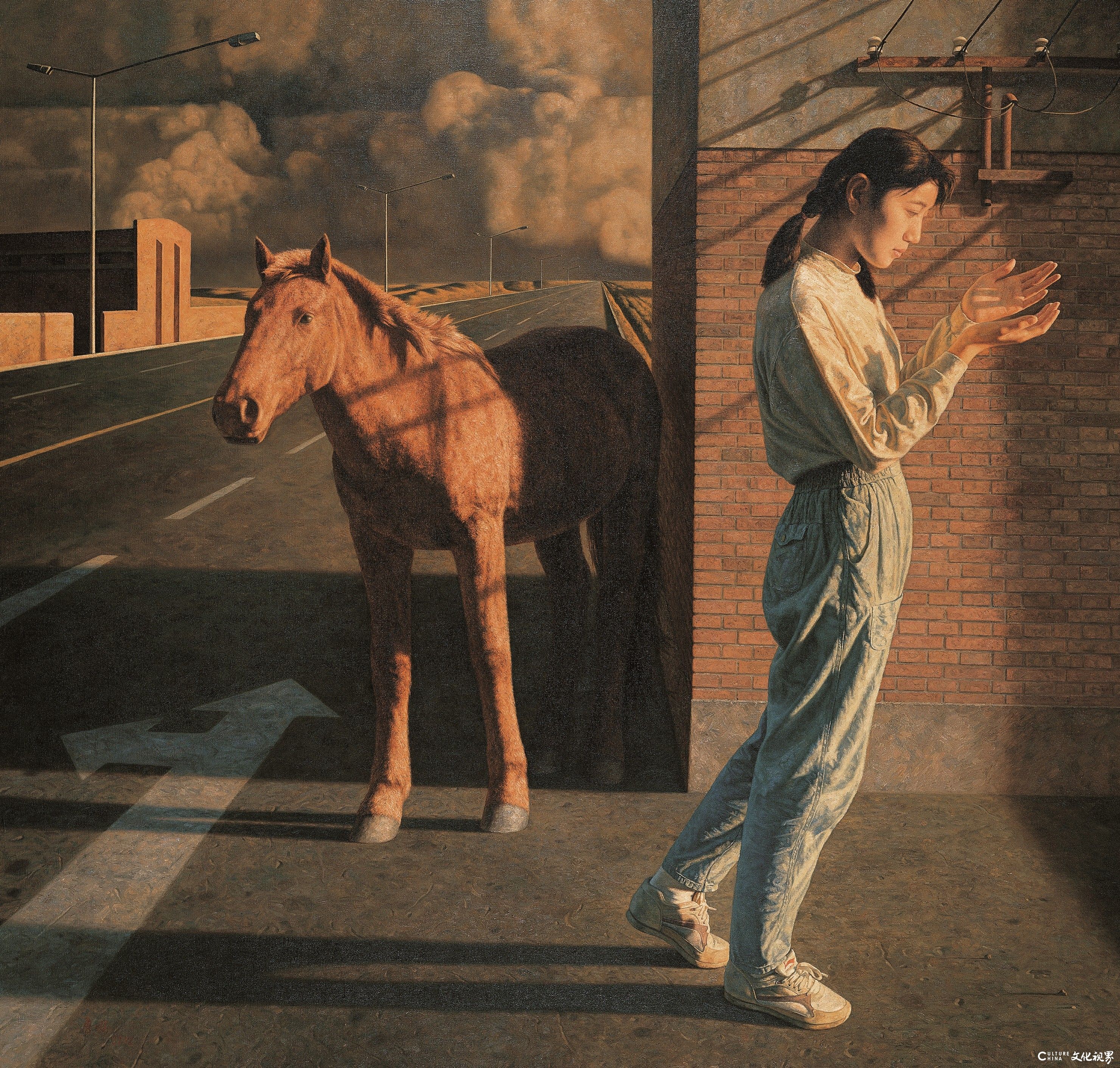 马琳的艺术生涯起步于乡土现实主义,却在发展中逐渐迈向更为深邃的超现实主义领域。他的创作过程是从现实中汲取灵感,而后在精神层面进行重构,所呈现的画面并非视觉现实的简单复制,而是精神现实的具象化。正如他自己所言:“我的画都是从现实中来,但现实里边是不存在的。”这种对现实与艺术关系的独特理解,使他的作品游离于多种风格之间,却又在这种游离中获得了最大的创作自由。